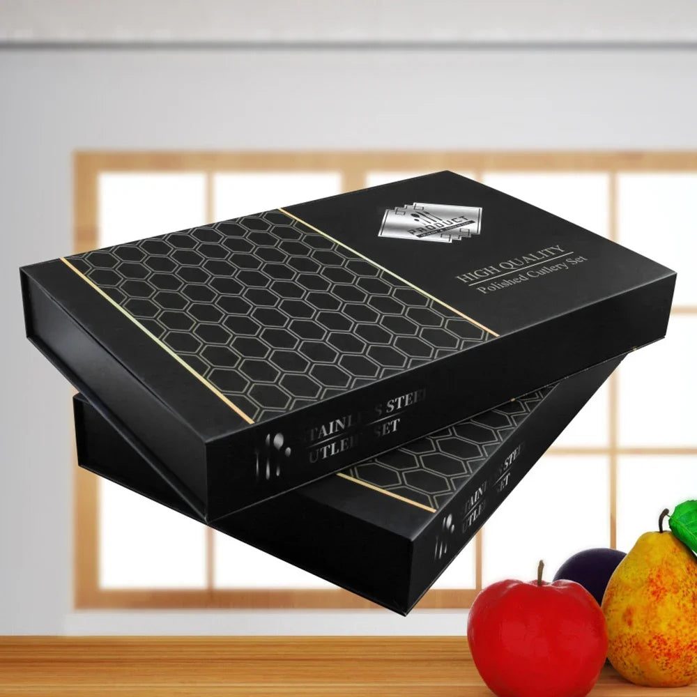24pcs Gold Flatware Stainless Steel Cutlery Gift Box Set