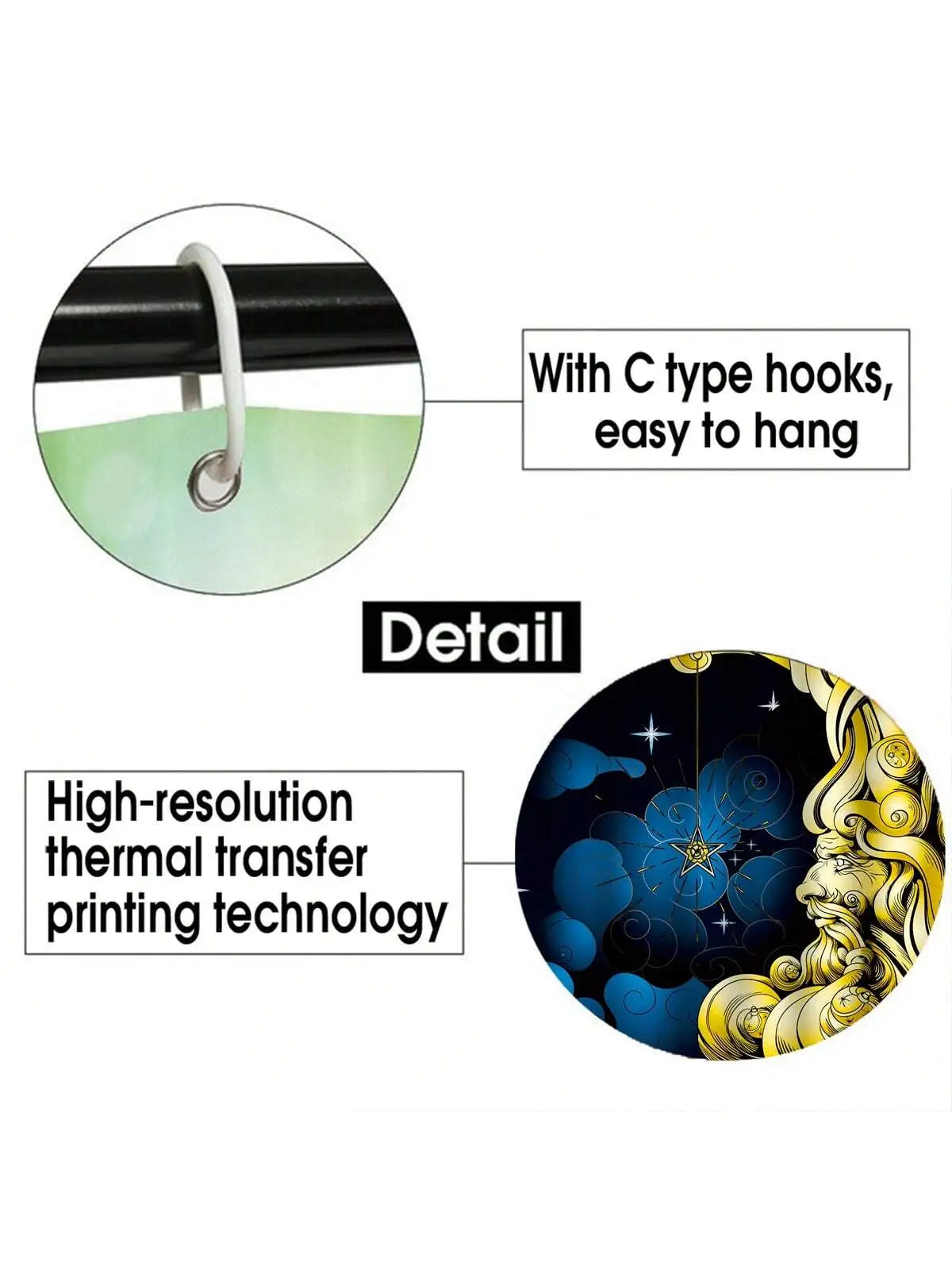 4pcs Moon Themed Bathroom Set With 12 Hooks
