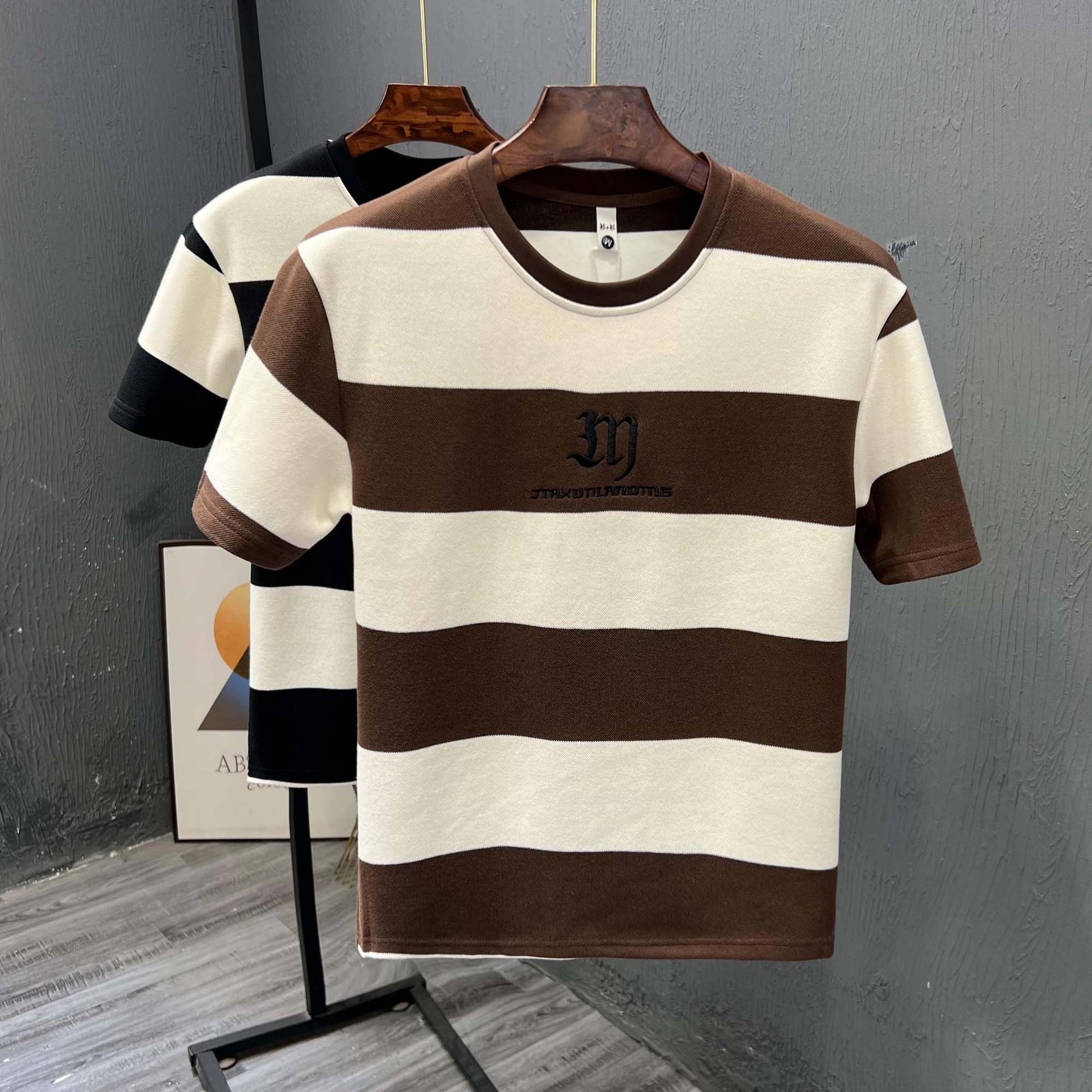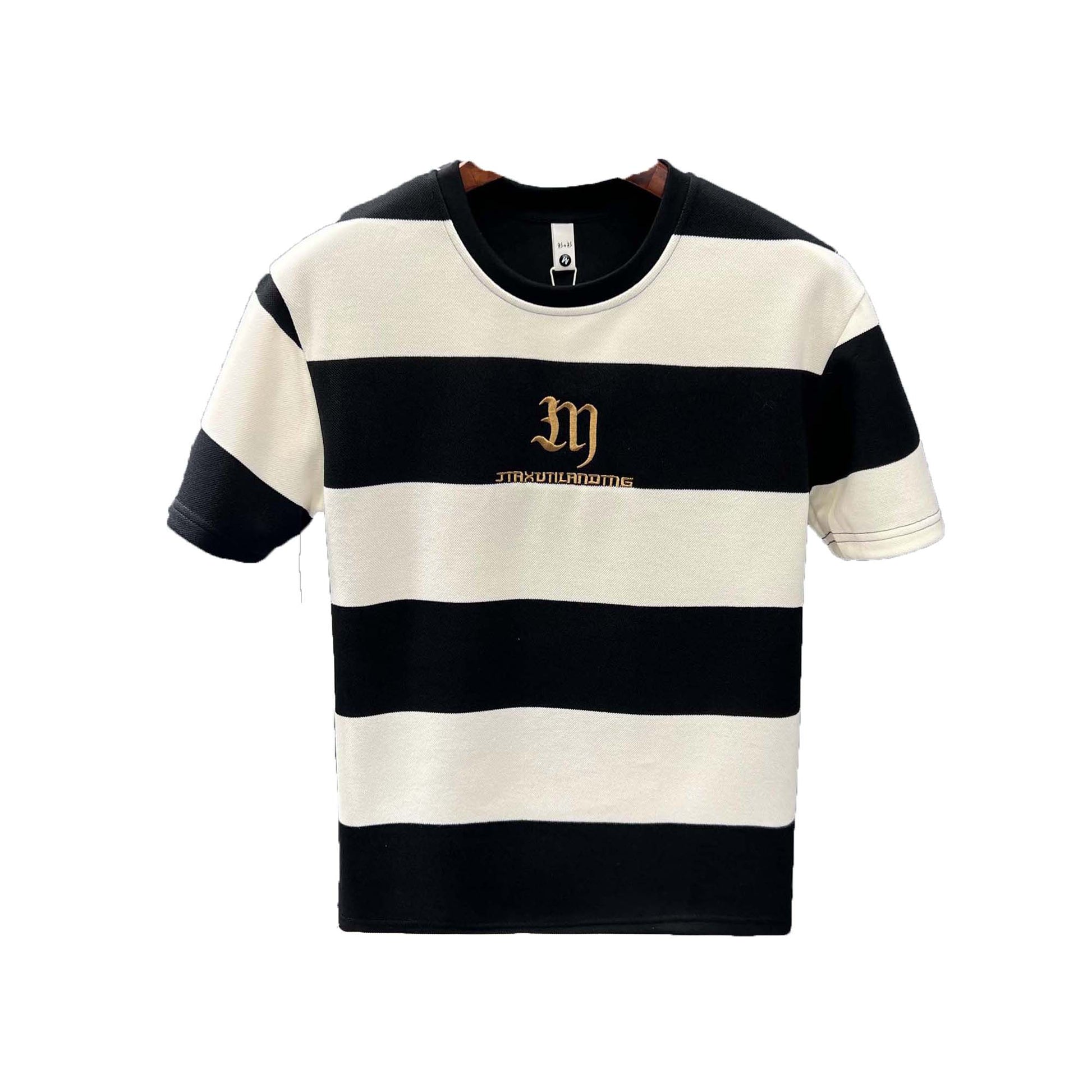 Product Title:Black and white striped T-shirt men's summer ins trendy brand embroidered half-sleeved T-shirt 2024 new men's top trendy short-sleeved