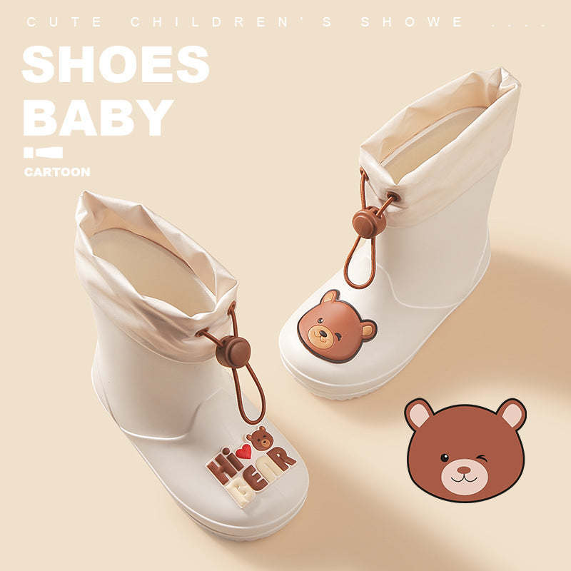 Children's rain boots kindergarten baby new style girls non-slip waterproof rain boots drawstring boy water shoes cartoon high