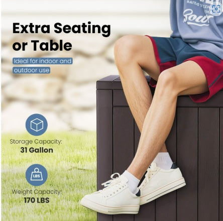 - 【All-Purpose Storage Solution】 This plastic storage box offers a spacious 31-gallon capacity and measures 22.08 x 17.1 x 20.86 inches, making it an ideal choice for indoor and outdoor storage needs. From patio cushions to gardening tools, this versatile container provides ample space to keep your belongings organized and secure. Ideal for storing pool supplies, delivery packages, and more, this storage box is a practical solution for any storage need.