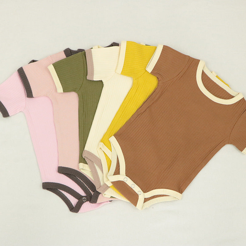 Infant and toddler boys and girls spring and summer ribbed triangle romper clothes crawling clothes jumpsuit