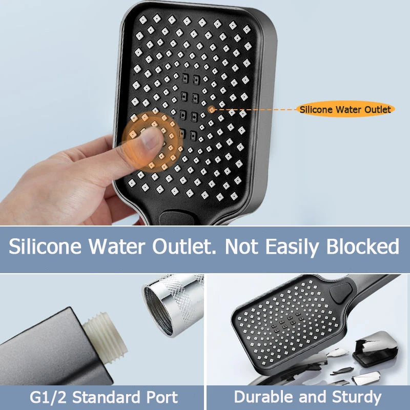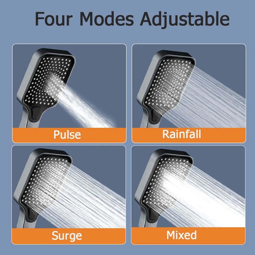 Large Flow Shower Head Black 4 Modes Square Water Saving Spray Nozzle